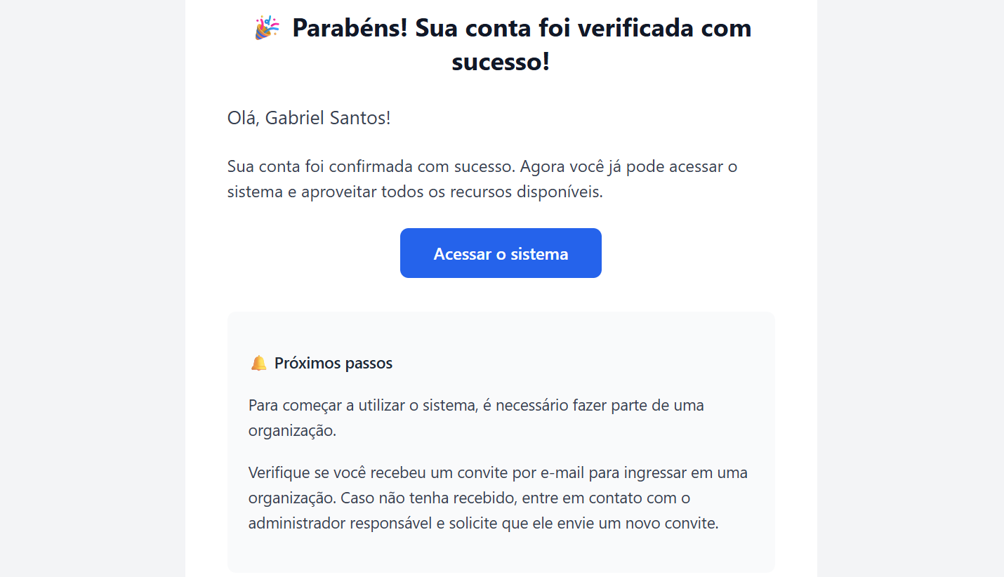 Assim que sua conta for aprovada, você receberá uma notificação no endereço de e-mail cadastrado confirmando a liberação do acesso.